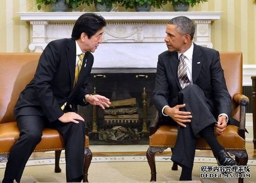 安倍晋三22日在白宫与奥巴马会晤,双方仅开放了一小段时间给媒体。