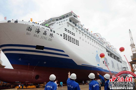 中国自行设计建造的目前国内最大客滚船“渤海翠珠”号。中新社发 王建波 摄