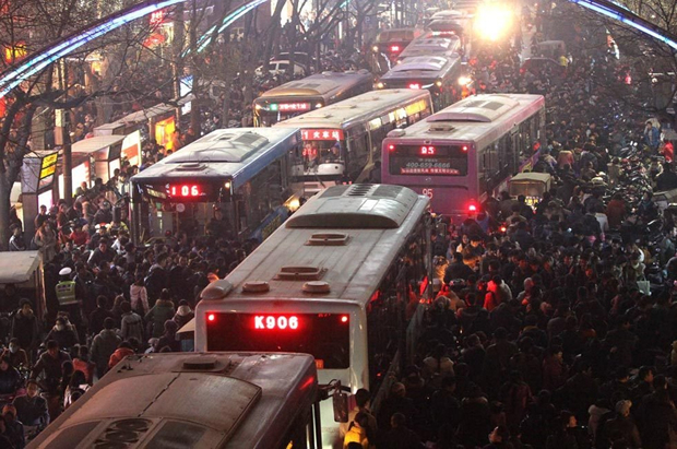 2013年2月24日,正月十五元宵节,在郑州人民公园门口哭喊声一片,车辆全部拥堵到路上成了停车场。