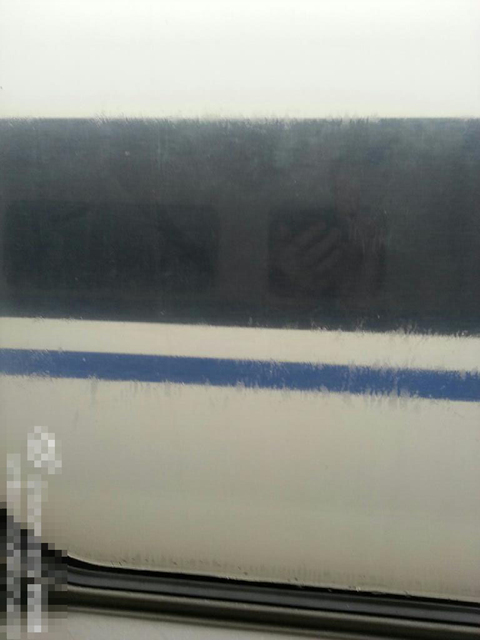 2月17日,D3012次动车,停驶五个多小时后,列车中环境令人窒息,由于室内外温差太大,窗户上已经开始滴水。