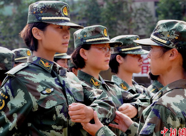 9月6日,福建省新入警女大学生、毕业于上海戏剧学院的皮岳与其他19名“90后”女大学生一起在福建省公安边防总队教导大队训练场训练。身高1.75米的皮岳被晒得黝黑、汗流浃背。此刻,很难让人把她与此前获得过的世界小姐上海赛区季军和华东六省舞蹈比赛表演金奖的“华丽”殊荣相联系在一起。8月初起,福建省公安边防总队2012年度入警大学生军事训练全面展开,206名参训学员是今年刚毕业的大学生,其中女学员20人,大多数是“90后。
