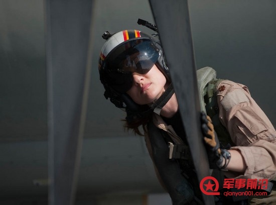 当地时间2012年1月25日,飞机指挥官Tara Refo被分配到空中第125预警队(VAW),负责检查飞行器的螺旋桨。