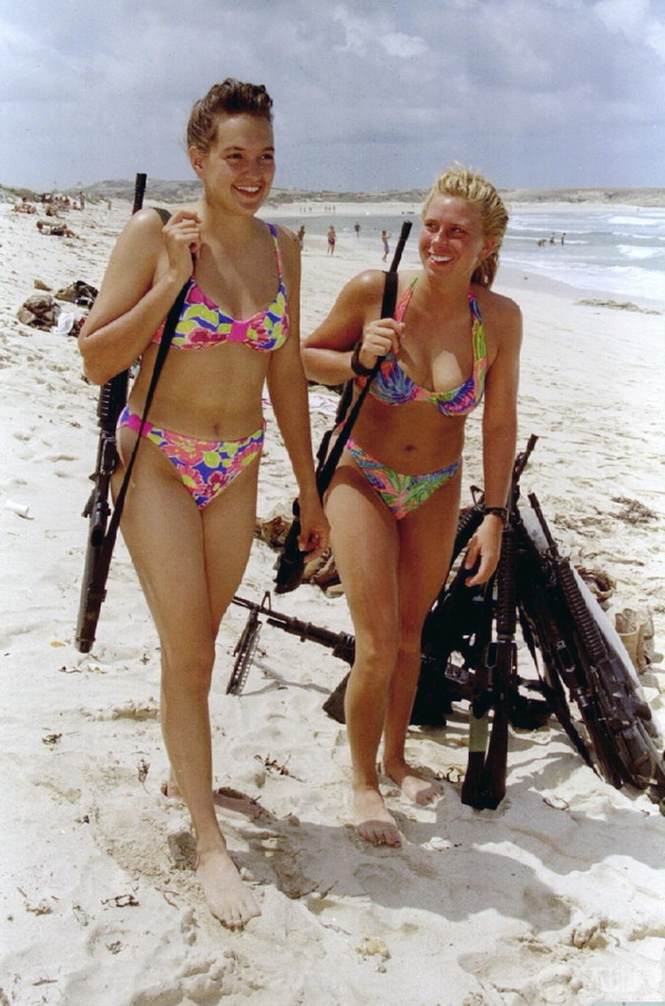 以色列女兵休闲逛街游海滩枪不离手(1)(3)