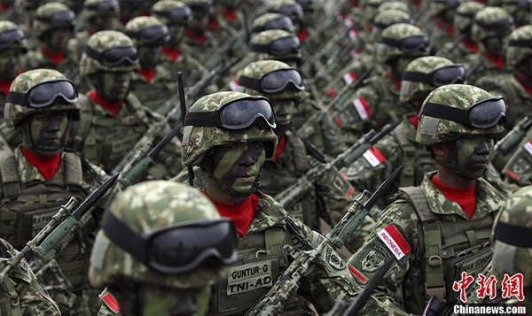 高清:印尼阅兵式女兵方阵神采奕奕(1)(2)